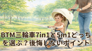 BTM 三輪車 7in1と5in1の違いを分かりやすく解説。対象年齢や機能、価格の違いを比較しながら、どちらを選ぶべきか迷わないポイントを丁寧に紹介します。