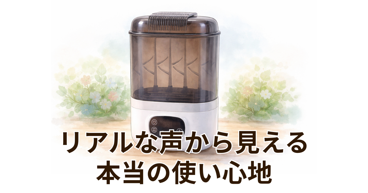 一方で、気になる口コミとして挙がるのが本体サイズと価格です。キッチンに置くと思ったより存在感がある、という声は一定数見られます。購入前に設置スペースを測っておくことが大切です。また、ほかの除菌方法と比べると価格はやや高めと感じる方もいます。ただし、手間や時間の負担を減らせる点を重視する家庭では「結果的に満足している」という意見も少なくありません。作動音についても話題になりますが、使う時間帯を工夫することで気になりにくくなる場合もあります。気になる点を知ったうえで選ぶことが、後悔を防ぐポイントと言えそうです。